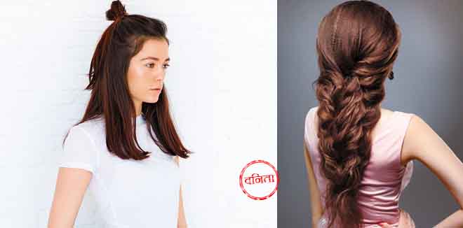 1 बालों को एक तरफ करके 2 भागों में बांट लें।