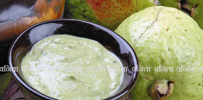 विधि : अमरूद की चटनी को कई तरह से बनाया जाता है। सबसे पहले अमरूद धो कर टुकड़ों में काट लें। पैन में तेल गरम करें। हींग, जीरा भूनें। अमरूद डाल कर एक मिनट भूनें। ठंडा होने पर सभी सामग्री मिला कर पीस लें। नीबू का रस मिलाएं। टेस्टी चटनी तैयार है। अगर आप अमरूद को भून कर बनाना चाहें, तो ज्यादा अच्छा फ्लेवर आएगा।  हरा धनिया, हरी मिर्च और नीबू का रस मिला कर भी अमरूद की चटनी ट्राई कर सकती हैं।
