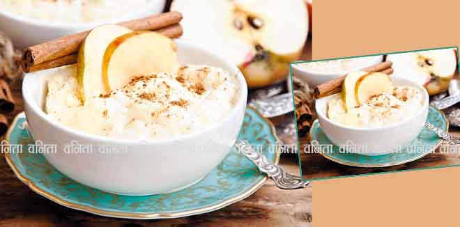 एपल रबड़ीः फुल क्रीम मिल्क को आधा घंटा या गाढ़ा होने तक पकाएं। इसमें कसा सेब और चीनी मिला कर कुछ देर पकाएं। इलायची पाउडर मिलाएं और ठंडा करके बादाम-पिस्ते से सजाएं। अगर खाते हैं तो इसमें दालचीनी का पाउडर भी मिला सकते हैं।