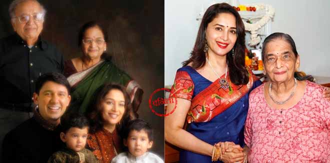 मां की कलाएं अब मेरे बच्चों को विरासत में मिल गयी हैं। रायन और आरिन म्यूजिक में अव्वल हैं, की-बोर्ड, तबला सीख रहे हैं। मेरे बच्चे फुल ऑफ लाइफ हैं, इसका श्रेय भी मेरे परिवार, खासकर मां को जाता है। आज अगर लोग मुझे एक कंप्लीट अभिनेत्री, परिपूर्ण मां का दर्जा देते हैं, तो उसके पीछे श्रेय मुझे मां से मिले संस्कारों को जाता है। शादी के बाद डॉक्टर श्रीराम नेने ने मुझे वह जिंदगी दी, जिससे सामजंस्य बिठा पायी। मेरे बच्चों के लिए चाहे उनकी मां अभिनेत्री है, मगर उन्हें यह अहसास हो चुका है कि अभिनय को अपनी जागीर नहीं समझना चाहिए। अगर उनमें अभिनय की कला है, तो उसे निखारना होगा। किस्मत साथ दे, तो वे अभिनय में आ भी सकते हैं। मां ने हमेशा कहा कि रेत को मुट्ठी में बंद कर कस कर ना पकड़ना, क्योंकि कस कर पकड़ी रेत मुट्ठी से छूट जाती है। बच्चों में जबर्दस्ती ऐसे संस्कार ना डालो कि बच्चे उकता जाएं ! प्यार से, संयम से और धीरज से बच्चों को अपनाना ! मेरा जीवन, कैरिअर सब कुछ मां की देन है। पिता जी(शंकर दीक्षित) के गुजरने के बाद मेरी मां ही मेरे परिवार का अटूट हिस्सा हैं।